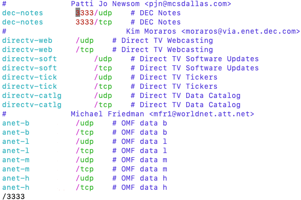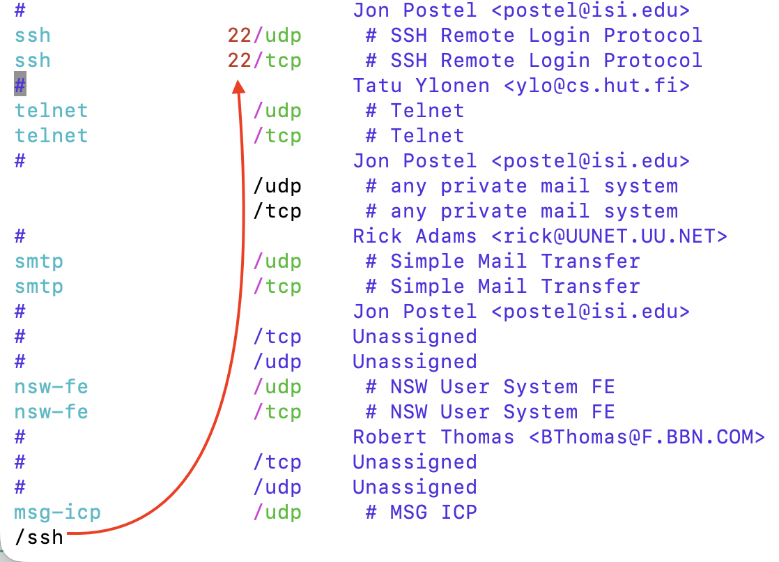 아까 열었던 /etc/services에서 다시 슬래쉬 "/"를 입력한 후,