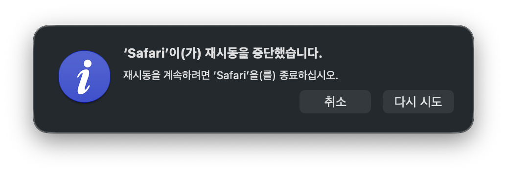 "강제 종료"로 사파리를 강제로 종료시킨다.